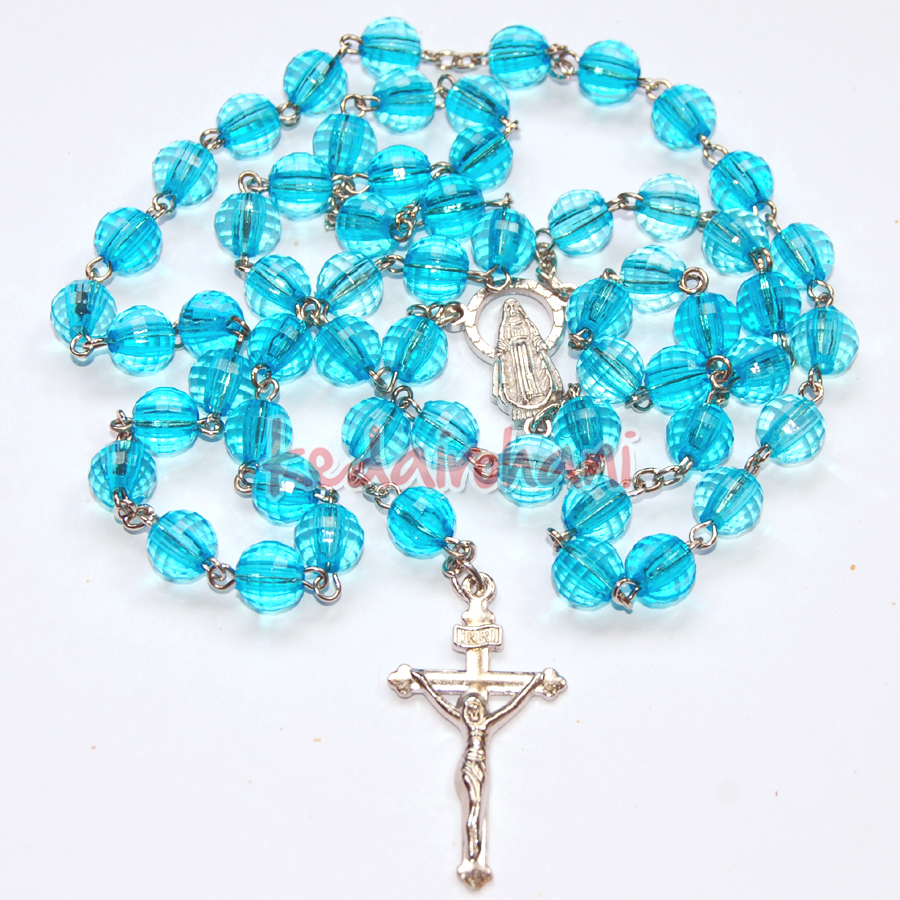 Bahan: Manik acrilic segi bentuk lampion (8 mm), Paku 9, rantai, ring, Herces dan Salib (Nikel).